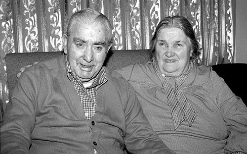 This photograph was taken in 1980 for the Fethard & Killusty Emigrants' Newsletter to go with an article 'Fethard’s Oldest Citizen' published below. Pat O’Shea, born in 1888, was Fethard’s oldest citizen in 1980. Pat is photographed above with his wife Kathleen (Farrell) whom he married in 1924. They had four daughters Joanna, Mary, Nellie and Peggy.