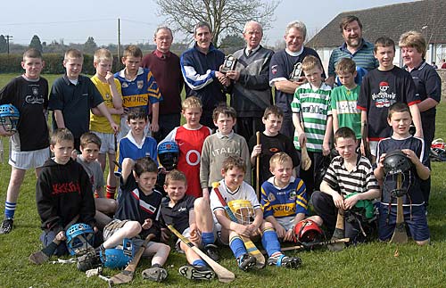 Fethard GAA Club made a presentation to Jim McGrath and Liam Hayes for their dedicated work in coaching pupils from St. Patrick’s Boys School in hurling and football over the years. The pupils are photographed above with Mr Eamon Dwyer (school principal), Noel Byrne (secretary Fethard GAA Club). Dick Fitzgerald (vice chairman Fethard GAA Club), Marie Murphy (Parents Association), and coaches Liam Hayes and Jim McGrath.